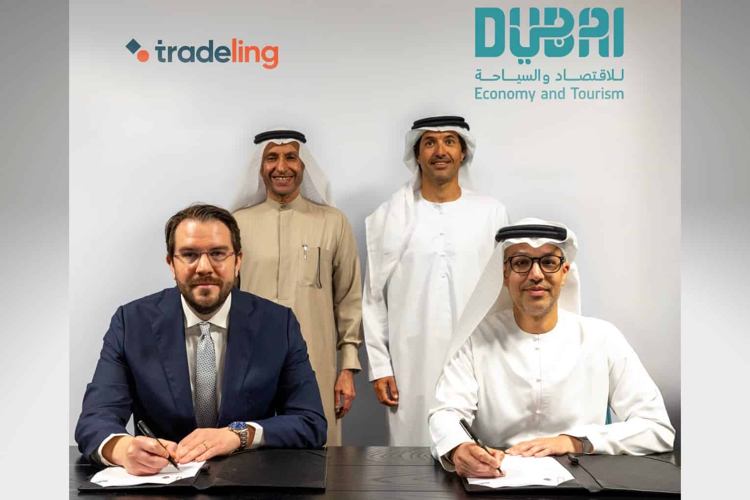 The partnership agreement was signed in the presence of His Excellency Helal Saeed Almarri, Director General of the Dubai Department of Economy and Tourism, and His Excellency Dr. Mohammed Al Zarooni, Executive Chairman of the Dubai Integrated Economic Zones Authority (DIEZ). It was signed by His Excellency Hadi Badri, CEO of the Dubai Economic Development Corporation (DEDC), the economic development arm of DET, and Alastair Croker, CEO of Tradeling.